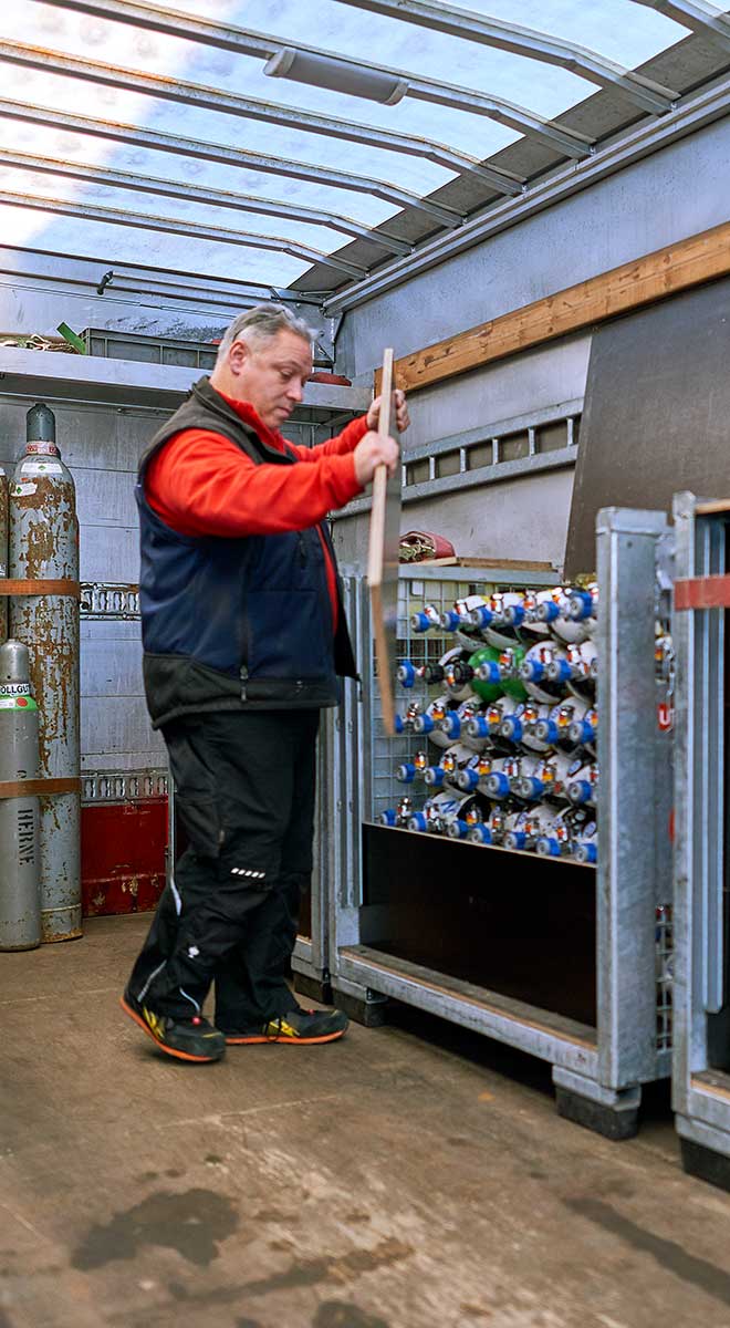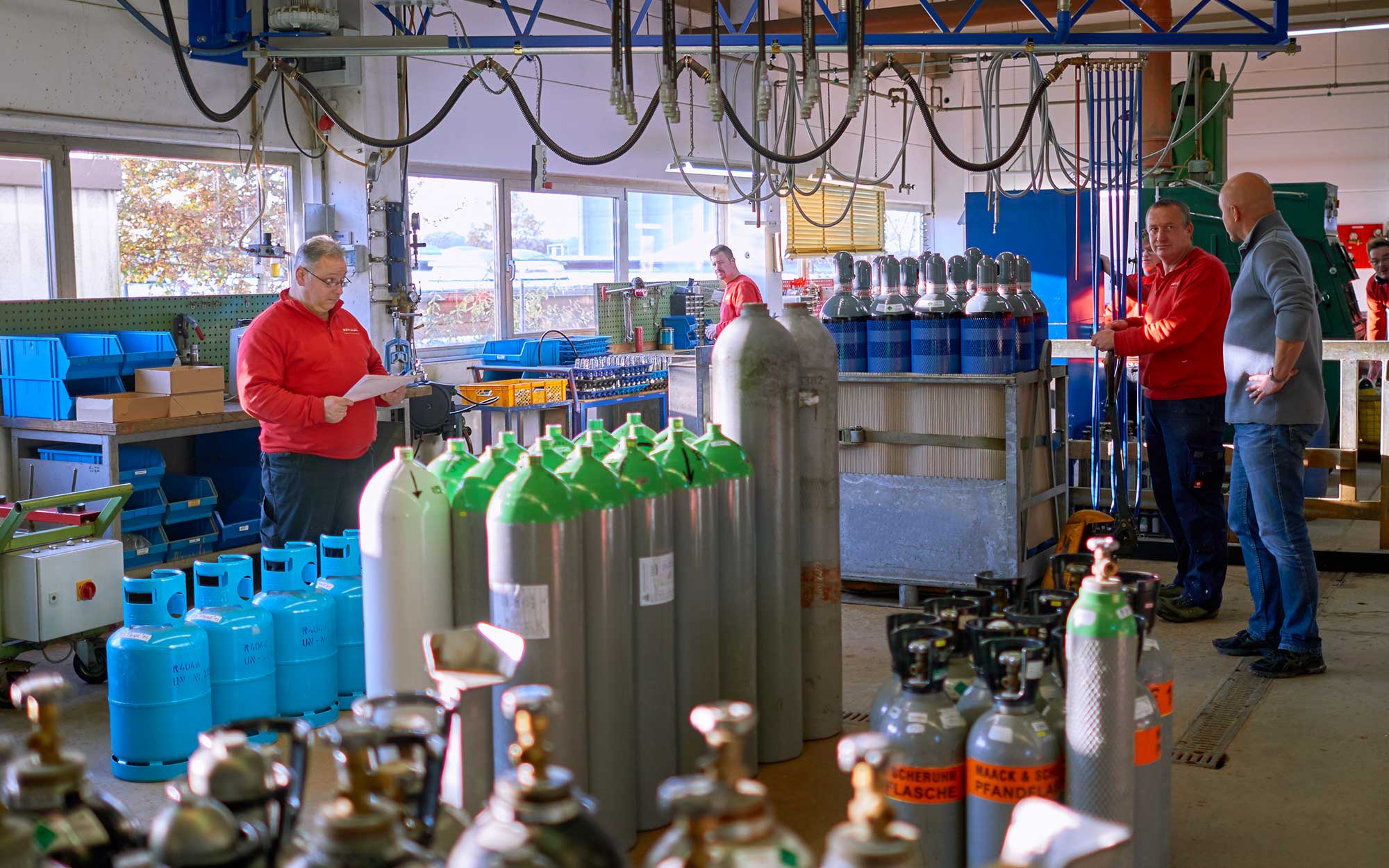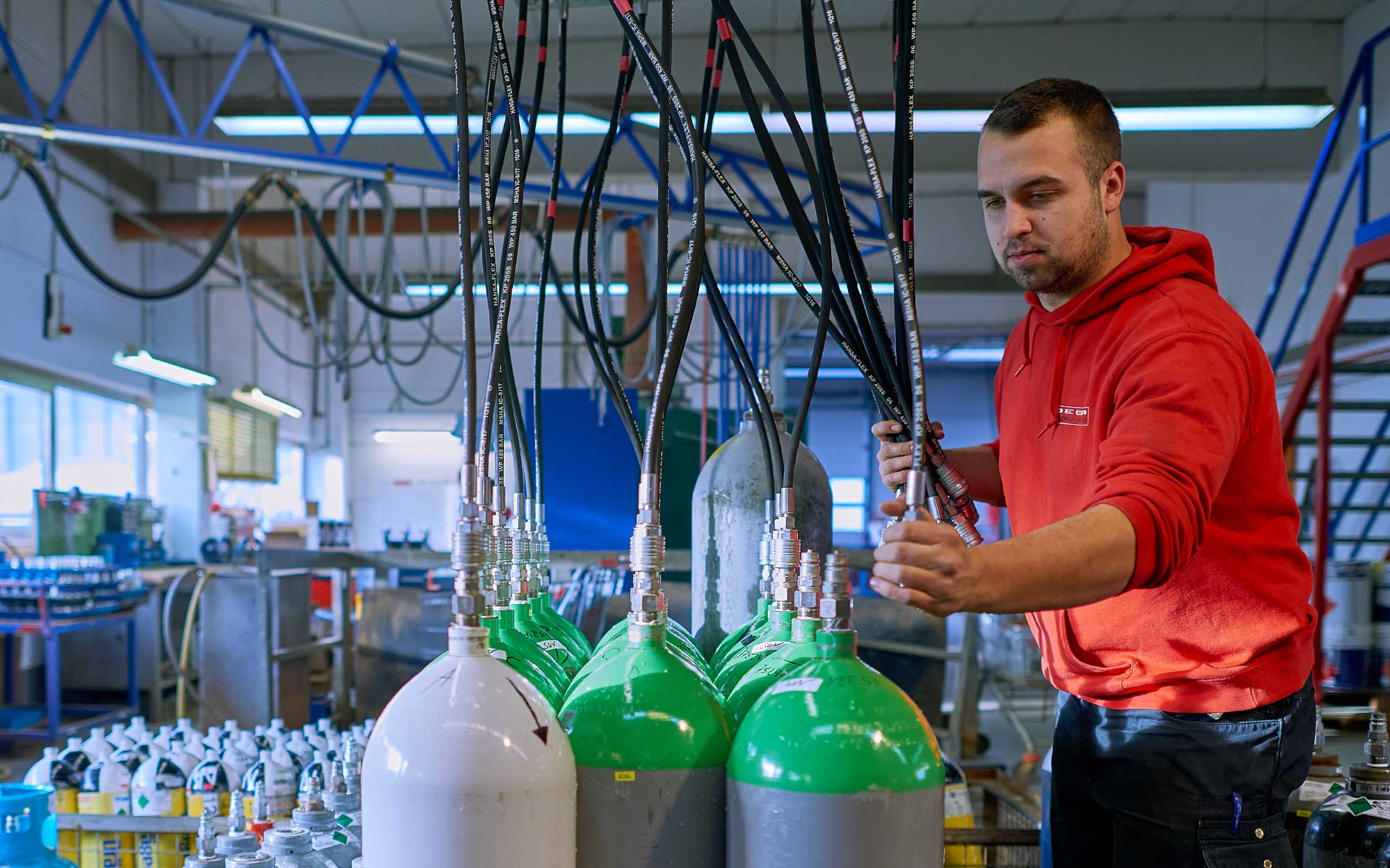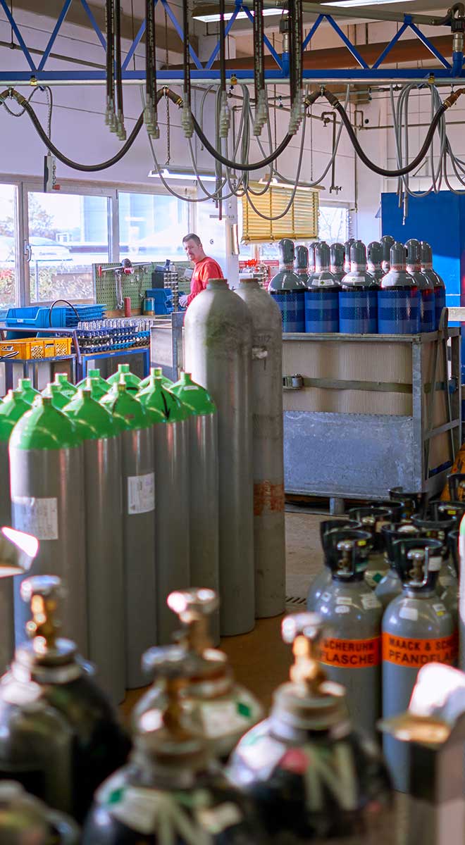 Neben dem Abfüllen von Gasen richten wir unser Augenmerk in erster Linie auf das Instandhalten und die TÜV-Abnahme von Druckgasflaschen. Darüber hinaus bieten wir ein umfangreiches Programm an Ersatzteilen, Verbrauchsmaterialien und Serviceleistungen an.